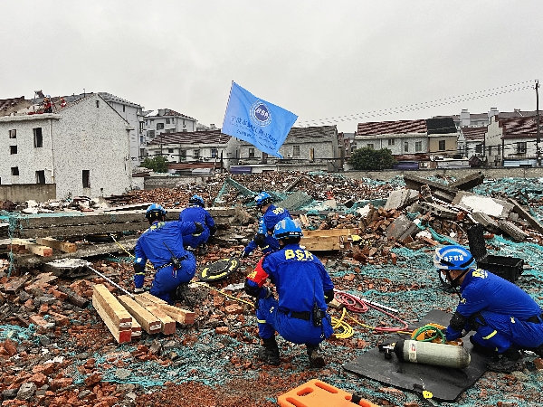 区蓝天救援慈善义工大队参与2025年甬绍建筑物坍塌救援联合演练